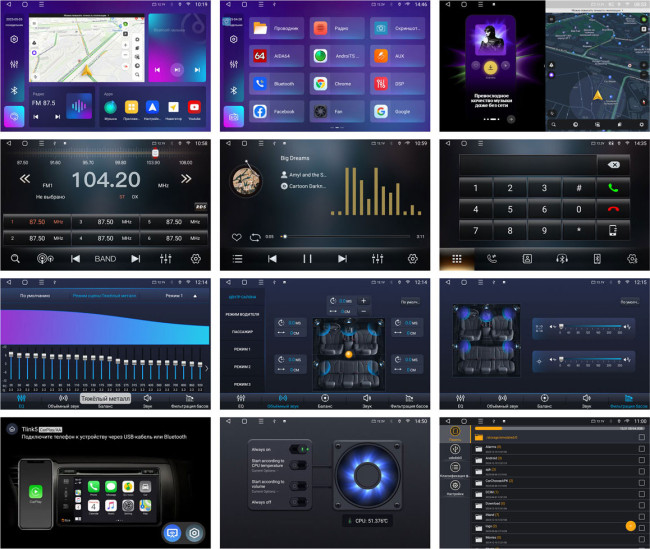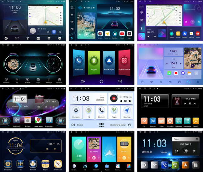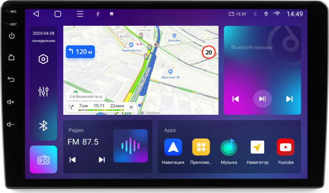 Тюнер с RDS на Android со встроенным модулем навигации с экраном 9" экраном, с USB, без поддержки карт памяти, совместим с iPod/iPhone и Android, воспроизводит WMA/MP3/Видео, наличие Bluetooth, подключение камеры заднего вида
