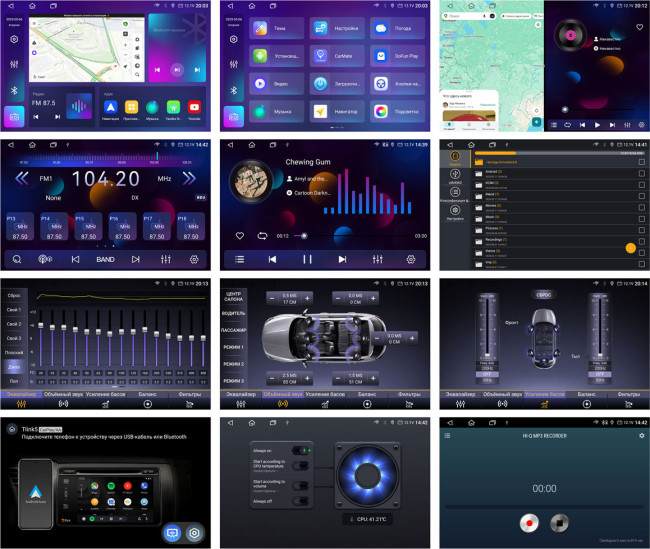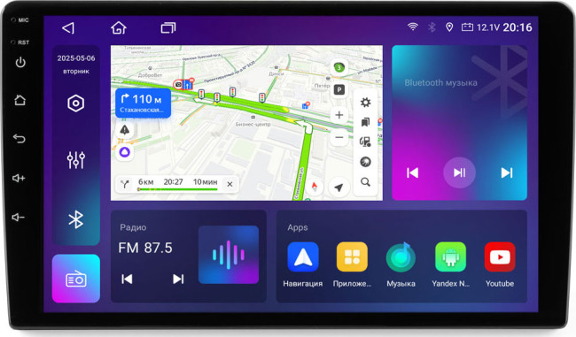 Тюнер с RDS на Android со встроенным модулем навигации с экраном 9" экраном, с USB, без поддержки карт памяти, совместим с iPod/iPhone и Android, воспроизводит WMA/MP3/Видео, наличие Bluetooth, подключение камеры заднего вида
