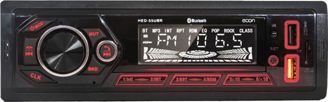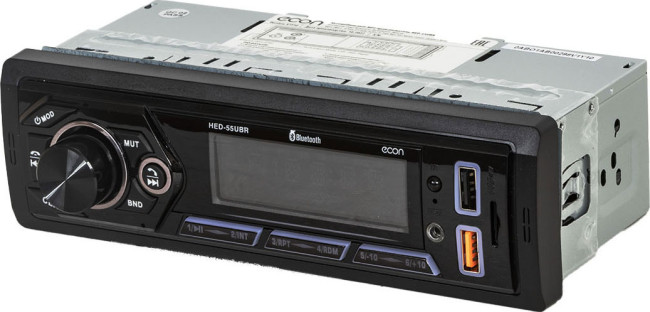 Тюнер с RDS без экрана, с USB, поддерживает карты памяти, совместим с iPod/iPhone и Android, воспроизводит WMA/MP3, наличие Bluetooth