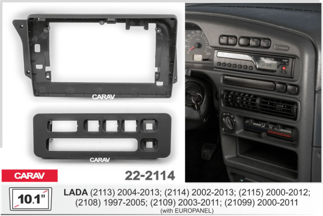 Характеристики:10,1" переходная рамка для а/м LADA (2113) 2004-2013; (2114) 2002-2013; (2115) 2000-2012; (2108) 1997-2005; (2109) 2003-2011; (21099) 2000-2011