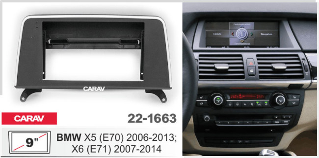 Характеристики:9" переходная рамка для а/м BMW X5 (E70) 2006-2013; X6 (E71) 2007-2014