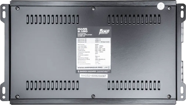 Мощность на канал при 2 Ом: 230 Вт (×2)
